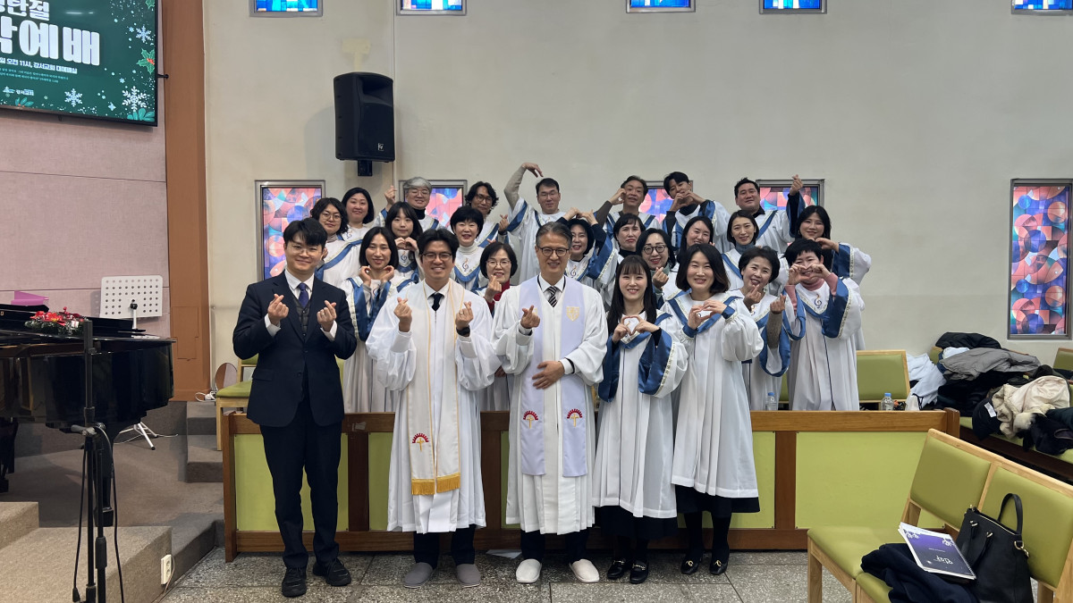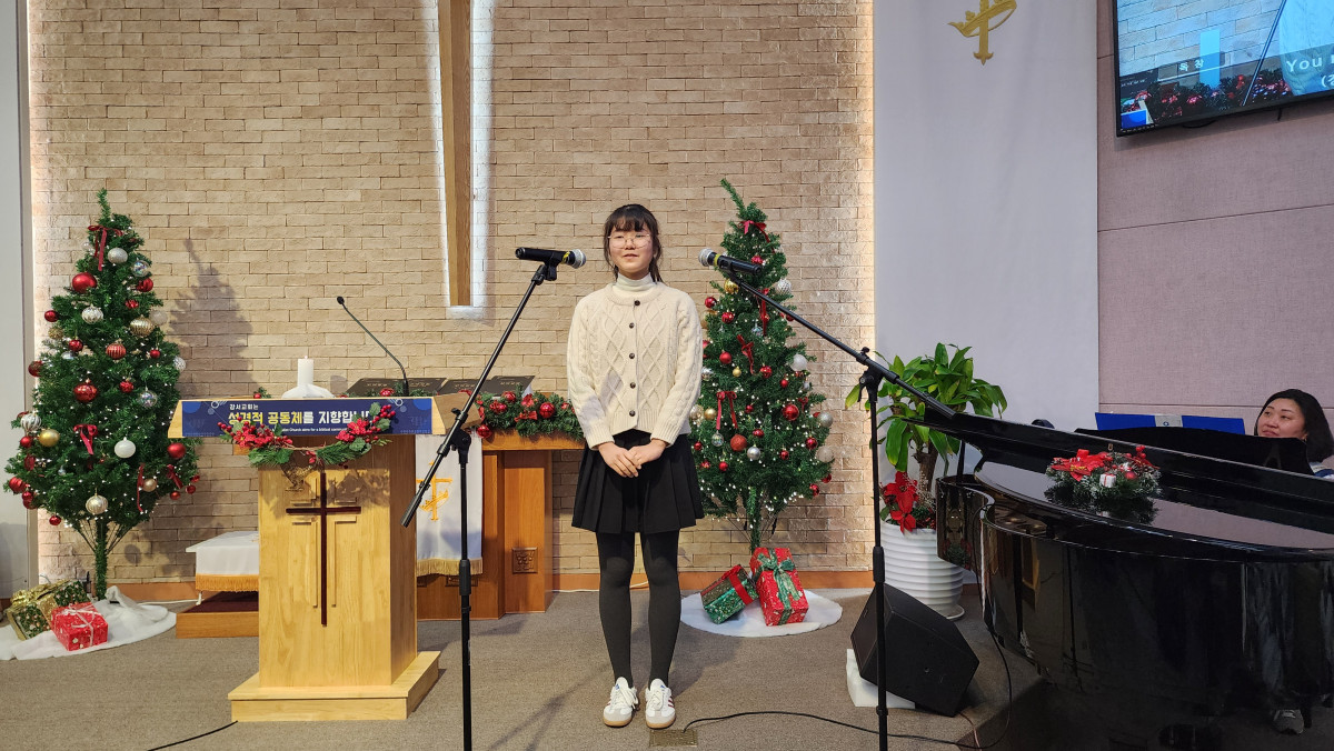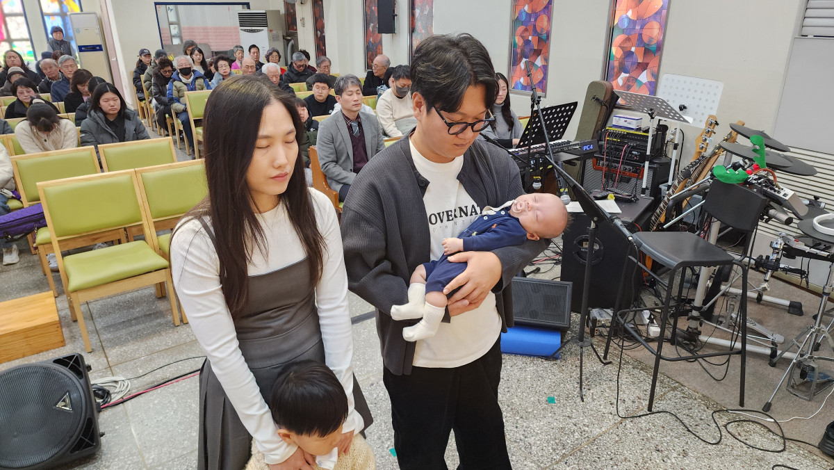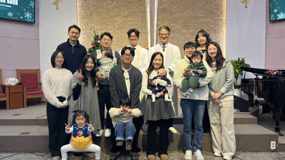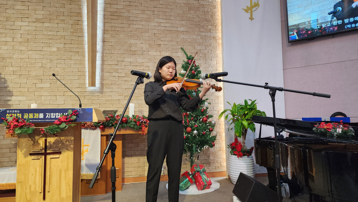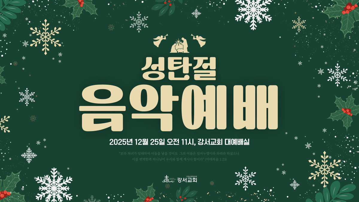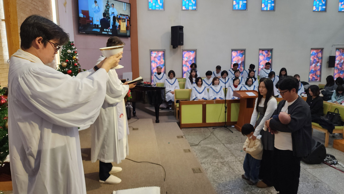 12월 25일(목)은 성탄절을 맞아 온 세대가 모여서 '성탄절 음악예배'로 드리게 되었습니다. 담임목사님께서 '임마누엘로 오신 예수님'(마 1:23)라는 제목으로 말씀을 전해주신 뒤, 할렐루야 찬양대에서 성탄 칸타타 '언약'을 합창하였으며, 이후로는 박유송 학생의 바이올린 연주(그 맑고 환한 밤중에, 참 반가운 성도)와 정서윤 학생의 독창(You raise me up), 그리고 송진영 집사님, 한소미 성도님, 홍종광 집사님의 중창(오 거룩한 밤) 순서가 있었습니다. 은혜로운 찬양과 연주를 해주신 찬양대와 성도님들, 그리고 학생들로 인해 더욱 풍성한 '음악 예배'로 드려졌으며, 모든 성도들이 주님의 오심을 다시 한번 기억하며 감사하는 시간이 되었습니다. 새롭게 태어난 아이 '이로'(이성혁, 권주이 집사님의 둘째)의 세례식도 있었는데요! 주님께서 선물로 주신 이로가 부모님의 믿음과 신앙의 교육을 통해 하나님의 귀한 자녀로 무럭무럭 자라나기를 축복하는 시간이었습니다. 성탄의 기쁨으로 충만하며 날마다 주님과 동행하는 강서교회 온 식구들 되기를 소망합니다 :) |